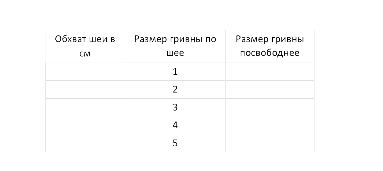 Подбор гривны осуществляется согласно таблице учитывая обхват Вашей шеи.