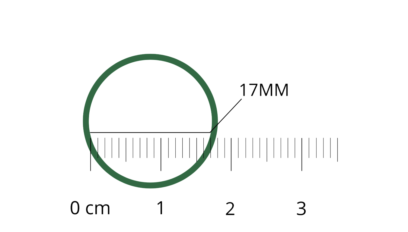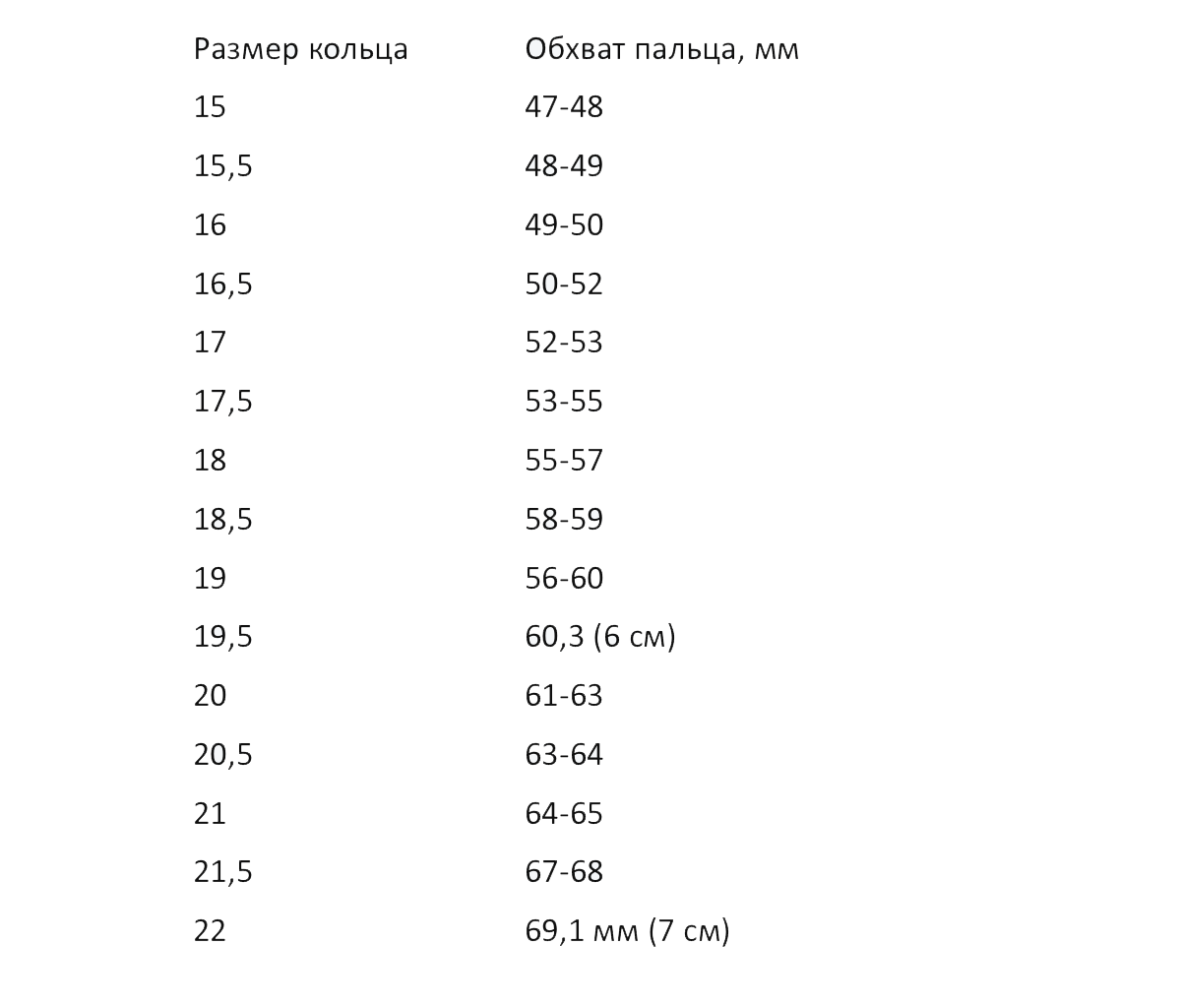 2. Если у Вас уже есть кольцо, которое Вам подходит - замеряйте его диаметр по внутренней части кольца, диаметр кольца в миллиметрах и есть размер. Например, 17,0 мм - 17,0 размер;